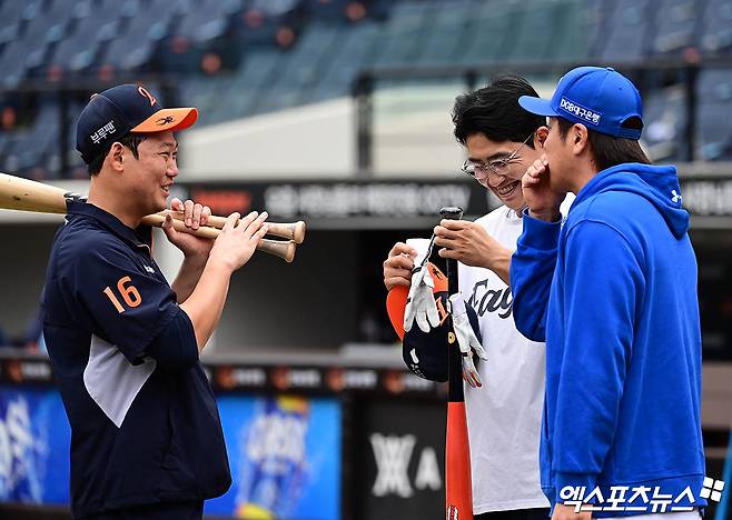강민호는 "(손)아섭이랑는 서로 멋진 경쟁을 해보자고 얘기했다. 누가 한국시리즈에 올라가든 그 선수가 우승 반지를 낄 수 있게 서로 응원해주자고 말했다"며 "상대 중심 타선이 좋아서 아섭이의 출루를 막아야 최소 실점이 가능하다. 어떻게든 아섭이를 잘 막아보겠다"라고 미소 지었다.