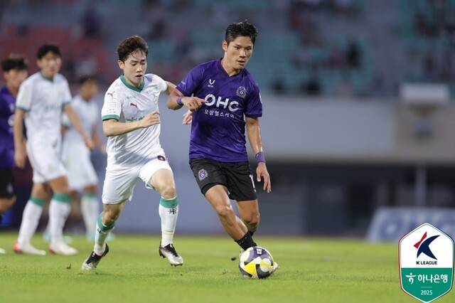 안양은 18일 오후 2시 안양 종합운동장에서 김천상무와 하나은행 K리그1(1부) 2025 33라운드 치르고 있다. 현재 안양이 한가람과 문성우의 연속골로 전반을 2-0으로 앞서 나가고 있다.