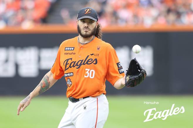 한 경기 최다 실점했는데...6이닝 버텨낸 한화 폰세, 타선 폭발하며 승리 투수 요건 갖춰 [PO1]