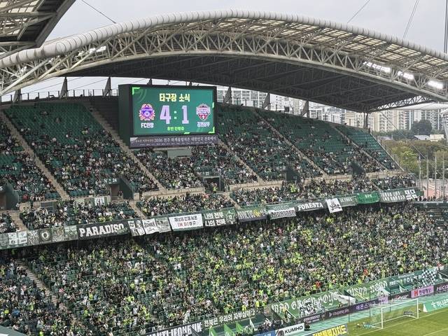 조기 우승 시나리오 중 가장 큰 변수는 한날 한시에 열리는 2위 팀 김천상무프로축구단이었다. 전북현대 경기가 진행되는 틈틈이 전광판을 통해 김천상무와 FC안양의 경기 상황이 전해졌다. 안양이 김천을 4-1로 꺾었다는 소식이 전해지면서 팬들의 목소리가 커졌다.