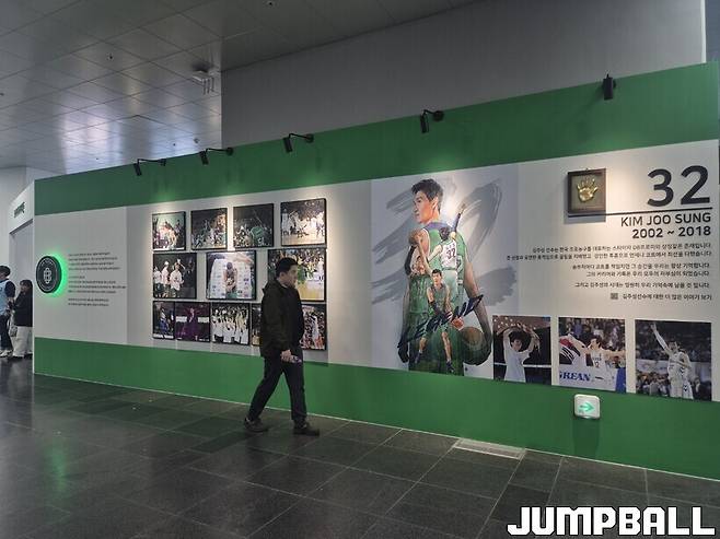 헤리티지 존 외부에는 DB 농구단의 상징과도 같은 김주성(감독)의 커리어를 돌아보는 공간도 마련되어 있다. 많은 남자 팬들이 앞을 지나며 사진을 찍었다.