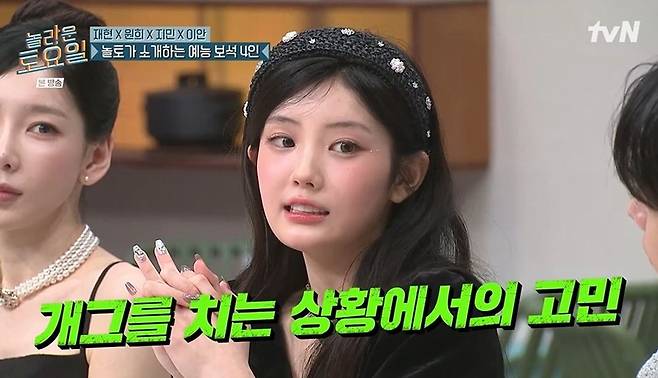 아일릿 원희는 앞서 신동엽이 '놀토'에서 춤을 잘못 따라 한 걸 봤다고 말하며 속성 강의를 해주었다. 이어 원희는 문세윤을 지목하며 "방송 중에 어쩔 수 없는 하품이나 혈당 스파이크가 올 때 자연스럽게 넘어가는 방법을 배우고 싶다"라고 밝혔다. 원희는 "개그를 칠 때 웃긴 멘트를 했는데 실패했을 때, 진지한 얘기인 척 어떻게 넘어가는지 (알고 싶다)"라고 덧붙이기도.
