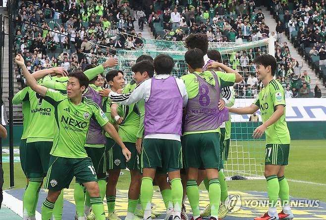 이날 전주월드컵경기장에는 2만1천899명의 팬이 운집해 전북의 조기 우승을 함께 축하했다. 전북은 시즌 누적 관중 31만5천105명을 돌파하며 구단 역대 최소 경기 30만 관중 돌파 신기록도 세웠다.