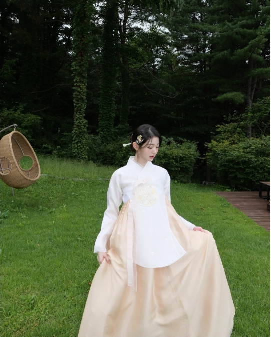흰 저고리에 살구빛 치마, 머리엔 전통 비녀를 꽂은 모습. 단아하고도 우아했다. 그런데 팬들의 시선을 사로잡은 건 그녀의 미모보다 그 한 줄이었다.