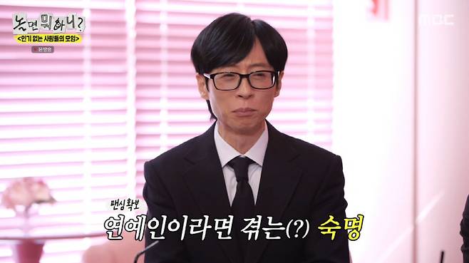 그러자 유재석은 "홍만이 뿐만 아니라 우리의 당연한 숙명이다"면서 "팬 여러분들도 본인의 일상이 있으신데 어떻게 우리를 챙기겠냐"고 했다. 주우재는 "우리를 떠 먹여 드려야 보시지 차려놓는다고 보시지 않는다"고 공감했다.