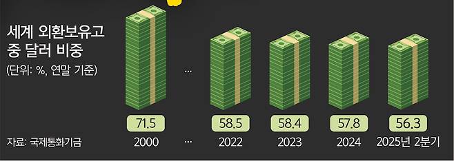 세계 외환보유고 달러비중 56% 그쳐