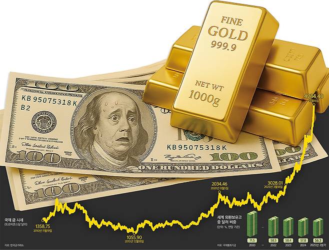 최근 금값 폭등을 단순히 안전자산 선호만으로는 설명하기 어렵다. 월가에서는 달러 약세와 미 국가채무 불안 속에 ‘3대 안전자산’으로 꼽히는 미 국채·달러 대신 금을 매입하는 흐름이 확산하고 있다는 분석도 나온다.