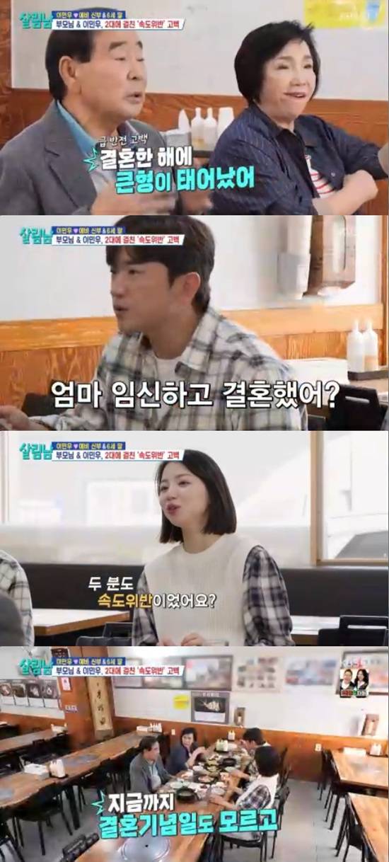 이민우 어머니는 배가 불러서 결혼을 했다고 털어놨다. 이아미는 "두 분도 속도위반이셨던 거냐"면서 신기해 했다.