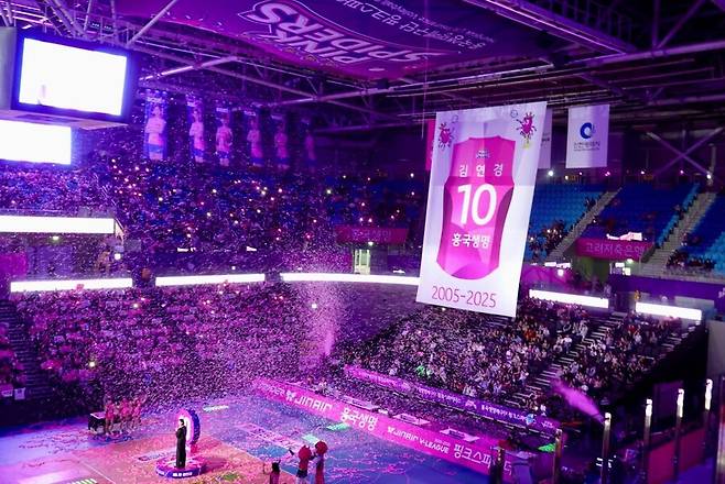 마지막으로 김연경은 플로어를 한 바퀴 돌고 도열한 흥국생명 후배들과 하이파이브로 은퇴식을 마무리했다. 조용히 코트를 떠나는 뒷모습엔 20년의 땀과 눈물, 자부심이 묻어 있었다.