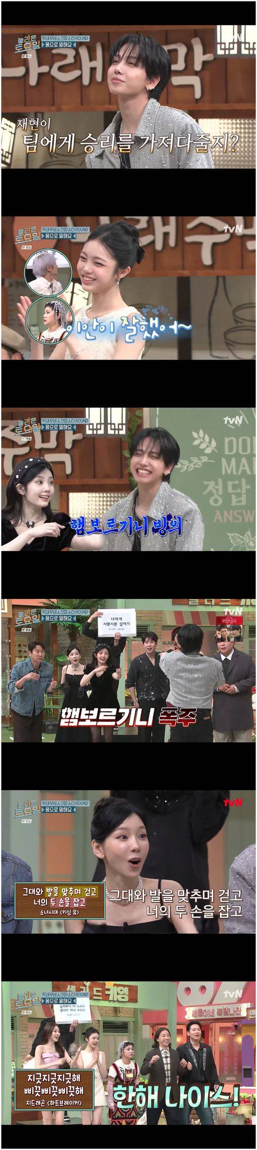명재현은 “‘많대’라고 끝내야 한다. 그래야 ‘말해’랑 맞는다”라며 라임의 이유를 들었고, 한해는 “내가 말했을 때는 수긍 안 해주더니”라며 명재현을 부러워했다. 이어 명재현은 간식 게임에서 게스트 중 첫 번째 성공을 거두어 10월 발매할 '할리우드 액션'의 무대를 선보일 수 있었다./osen_jin0310@osen.co.kr