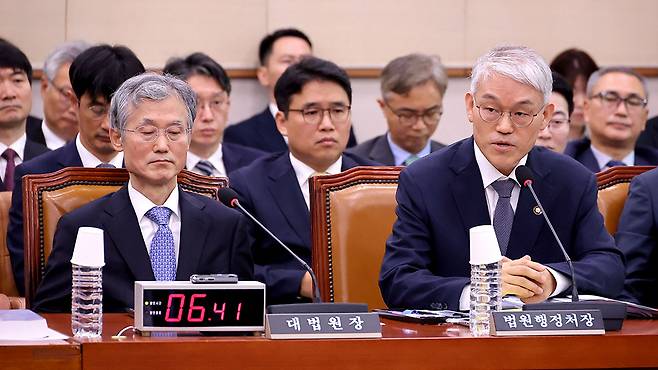 국회의 해명 요구가 사법 독립 침해라는 조희대 대법원장을 대신해 자리를 지킨 천대엽 법원행정처장은, 삼권분립을 강조했습니다.