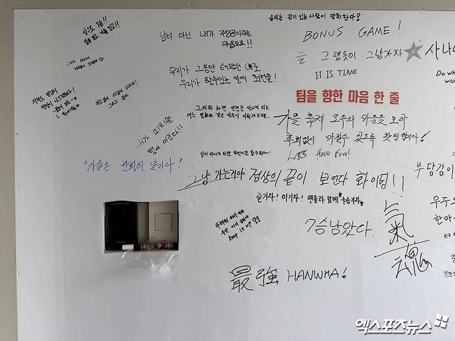 "보너스 게임"이라고 적은 주장 채은성은 결승타 포함 3안타 3타점으로 팀 승리를 이끌었고, "지치면 진다, 미치면 이긴다"고 쓴 문현빈도 싹쓸이 3타점 포함 2안타 2득점으로 '미친' 활약을 선보였다. 이제 한화의 한국시리즈까지는 2승이 남았다.