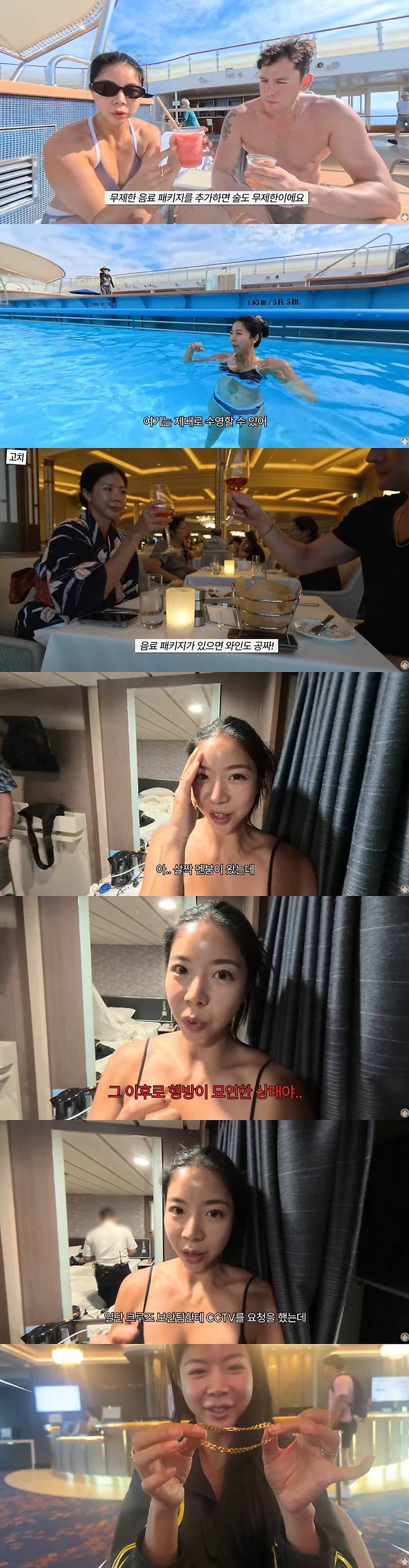 운동 유튜버 박지은이 크루즈 여행을 하다 금팔찌를 잃어버릴 뻔한 아찔한 경험을 했다.