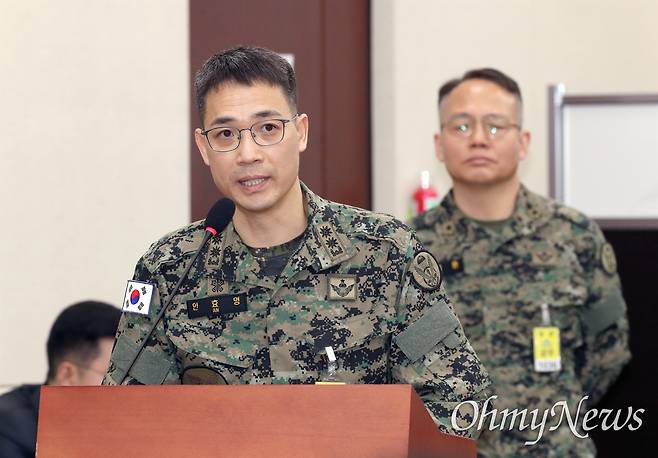 | ▲ 안효영 특수전사령부 제1공수특전여단 작전참모가 2월 21일 오전 서울 여의도 국회에서 열린 내란 국조특위 4차 청문회에 출석해 답변하고 있다. 오른쪽 뒤는 이상현 특수전사령부 제1공수특전여단장. |