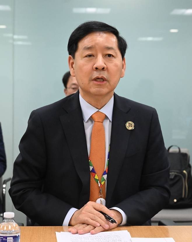 [주요20개국(G20) 재무장관회의와 국제통화기금 및 세계은행(IMF/WB) 연차총회 참석차 미국 워싱턴DC를 방문 중인 구윤철 부총리 겸 기획재정부 장관이 16일(현지시간) 국제통화기금(IMF)에서 동행기자단과 간담회를 하고 있다. (기획재정부 제공=연합뉴스)]