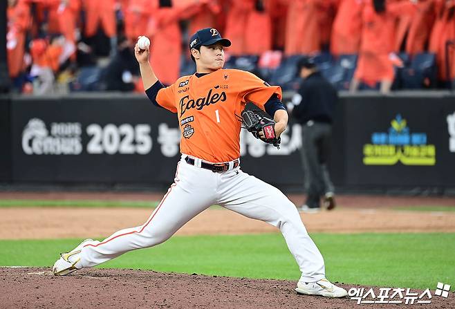 믿었던 '에이스' 코디 폰세의 난조로 3점을 내주고 시작한 경기, 시소게임을 벌이며 6-6 동점을 만든 뒤 채은성의 적시타로 8-6으로 앞선 7회초 폰세가 문동주에게 마운드를 넘겼다.