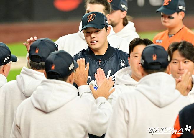 "미친 볼"→"입 벌리고 봤다"→"사사키 로키" 극찬 또 극찬…더그아웃 덮친 '162km' 대전왕자 불펜 임팩트 [PO 현장]