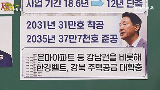 이게 목표입니다. 2031년에는 31만 호를 착공해서 2035년에는 37만 호를 준공하는데 한강 벨트 쪽이 많아요. 사람들이 살고 싶은 곳에 집을 지어야 된다. 그래서 대치동 은마 아파트 재개발 재건축에 엄청난 지금 관심을 보이고 있거든요. 그러면서 강북 지역에는 "신도시를 만들겠다" 이렇게 얘기를 하고 있습니다.