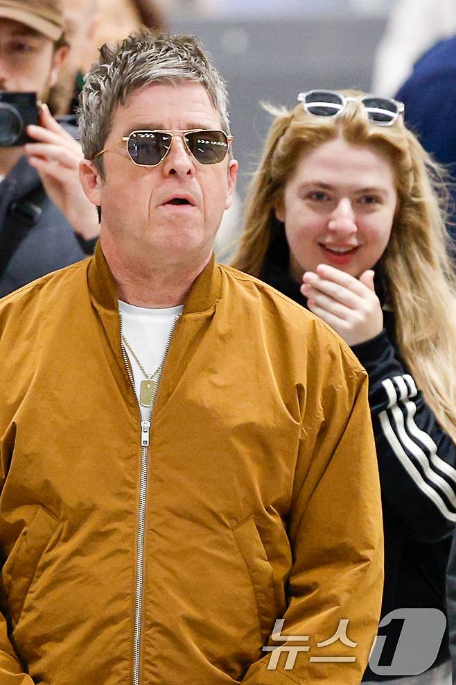 (인천공항=뉴스1) 안은나 기자 = 16년 만의 내한 공연을 앞둔 밴드 오아시스(Oasis)의 노엘 갤러거(Noel Gallagher)가 19일 오후 인천국제공항 2터미널을 통해 입국하고 있다. 오른쪽은 딸 아나이스 갤러거. 2025.10.19/뉴스1