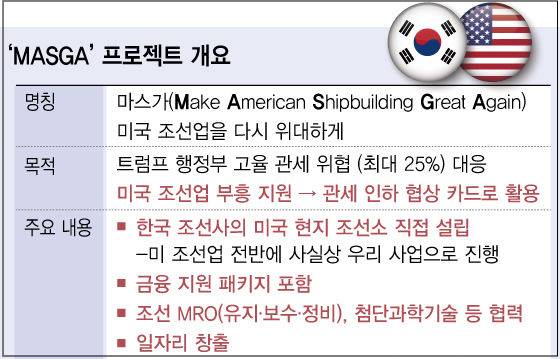 대미 투자액 3500억달러(약 500조원) 가운데 1500억달러(약 210조원) 규모의 '마스가'(MASGA·미국 조선업을 다시 위대하게) 관련 조선업 협력 펀드에 대한 우리 측의 '안전 장치'가 필요하다는 지적이 나온다. 미국 트럼프 행정부의 압박에 못이겨 미국 내 법 개정 약속 없이 현금 투자만 약속할 경우 자칫 손해만 볼 수 있다는 우려에서다. 한화오션의 미국 자회사 5곳 등은 이미 중국 상무부로부터 제재를 당하기도 했다.