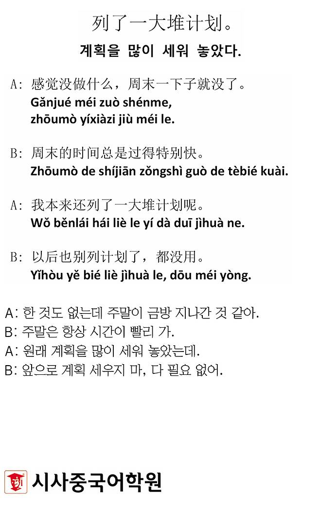 [시사중국어학원의 리얼 중국어 회화] 계획을 많이 세워 놓았다.