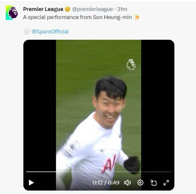 그러한 상황에서 맞이하는 빌라전. PL 사무국은 손흥민을 집중 조명했다. 사무국은 공식 채널을 통해“손흥민의 특별했던 순간들”이라는 문구와 함께 47초 길이의 영상을 게재했다. 손흥민이 그간 빌라를 상대로 넣었던 환상적인 득점을 갈무리한 것.