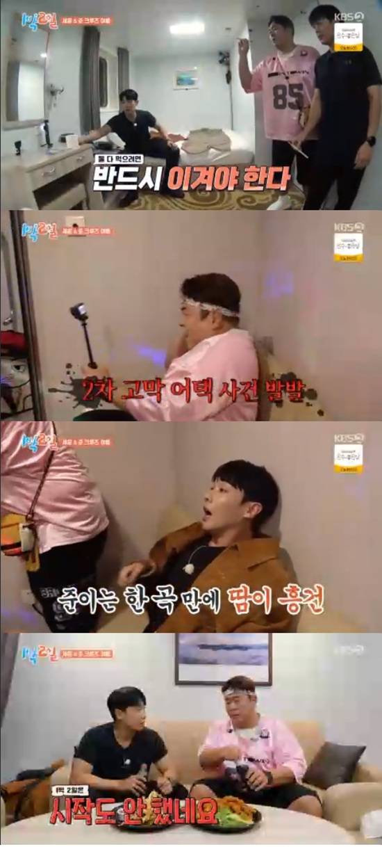 문세윤과 이준은 코인 노래방에 들러 '흐린 기억 속의 그대', 'We are the future'를 부르고 야식으로 주문했던 먹태, 치킨을 챙겨서 방으로 들어갔다.