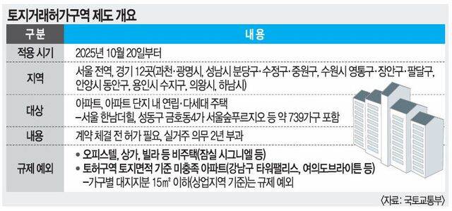 10·15 부동산 대책에 따라 20일부터 내년 12월 31일까지 서울 전역과 경기도 12곳이 토지거래허가구역(토허구역)으로 묶인다.