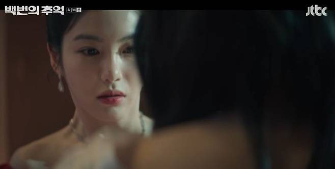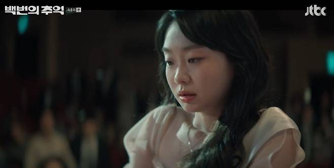 19일 JTBC '백번의 추억' 최종회에선 오랜 절친 종희(신예은 분)를 구하고자 몸을 던지는 영례(김다미 분)의 모습이 그려졌다.