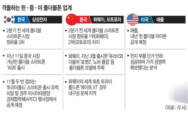 폴더블폰 삼국지… 앞서는 중국에 삼성·애플 반격 준비