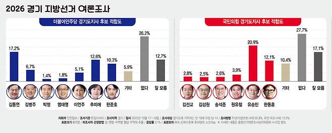 [2026 지방선거 여론조사] 차기 경기지사, 與 김동연·野 유승민 선두