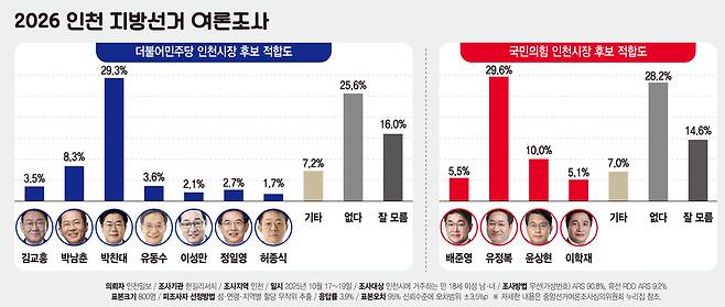 - [2026 지방선거 여론조사] 인천 민심, 여전히 민주당…국힘 반등은 '제자리'