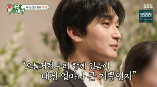 이어 본식이 진행되자 윤현민은 이복동생의 모습을 보며 뭉클함과 동시에 “괜히 좀 슬프다”라고 심경을 드러냈다.