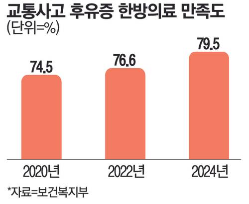 근골격계 질환의 경우 한의치료 만족도가 높다는 것도 생각해 볼 부분이다. 지난해 보건복지부가 발표한 ‘한방의료이용 실태조사 결과’에 따르면 일반 국민의 한의치료이용 만족도는 79.5%인 것으로 나타났다. 지난 2020년 74.5%, 2022년 76.6%와 비교하면 매년 만족도가 높아지는 추세다.