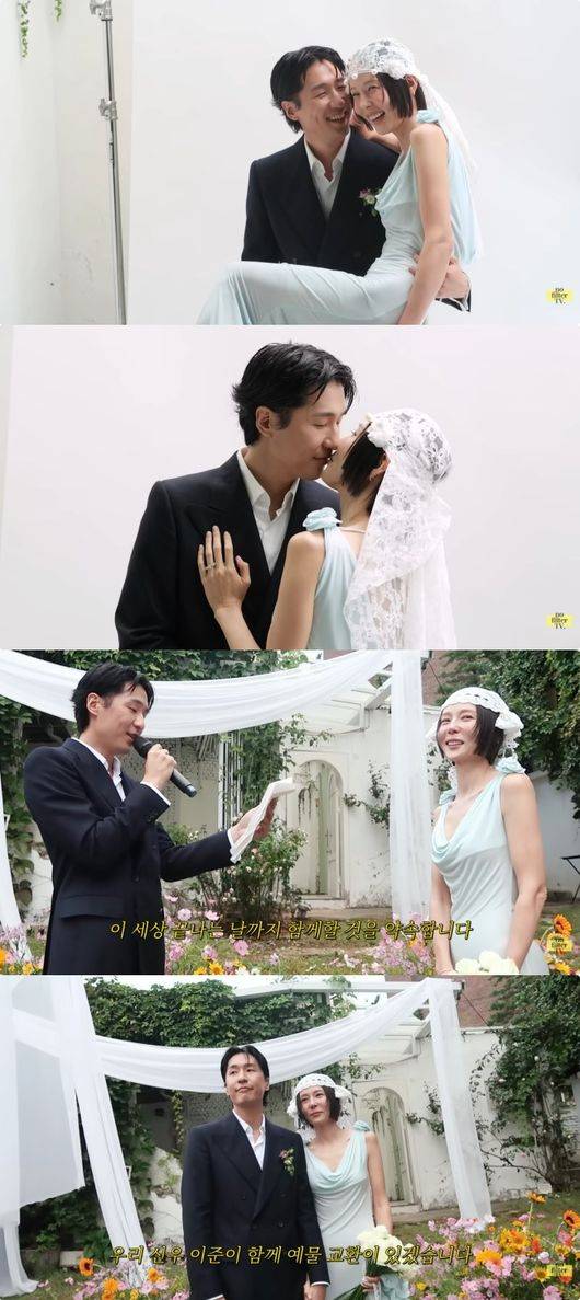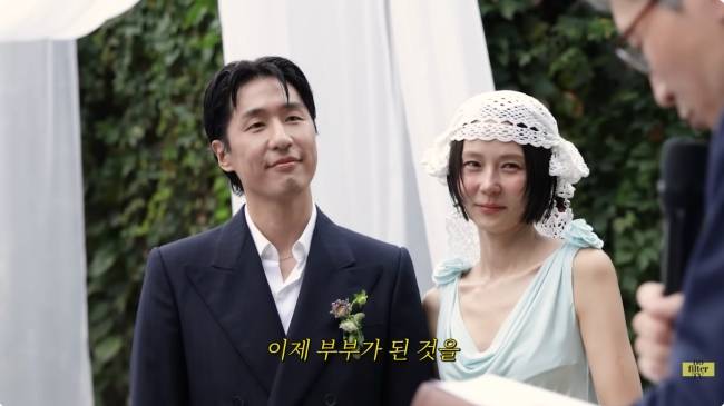 아름다운 꽃으로 장식된 야외 결혼식장에서 사랑의 서약을 하고, 가족과 지인들의 축복을 받은 김나영과 마이큐였다.