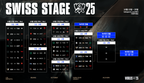 세 팀을 무너뜨리는 동안 한 세트도 패하지 않으면서 8강에 선착한 kt 롤스터는 3승 2패로 스위스 스테이지를 통과한 팀 가운데 한 팀과 8강에서 대결한다.