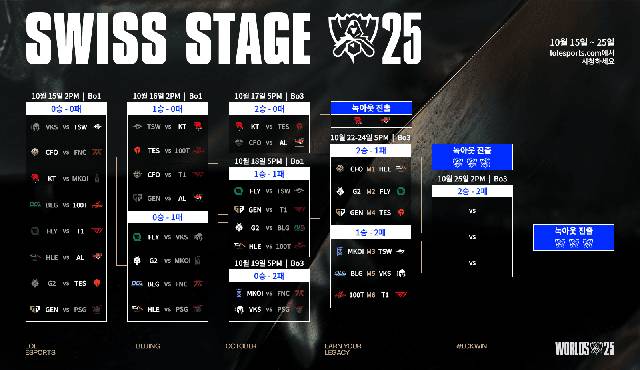 [2025 월즈] KT 8강, 젠지-한화생명 2승 1패, T1 1승 2패... 반환전 돈 16강 스위스 스테이지
