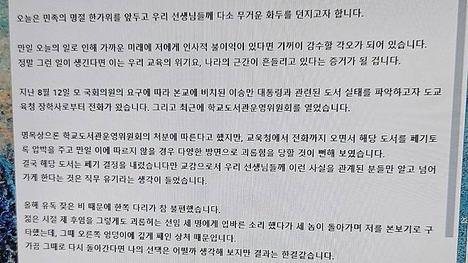 A 교감은 또한 "교육청이 도서 폐기를 압박했다"고 주장했습니다.