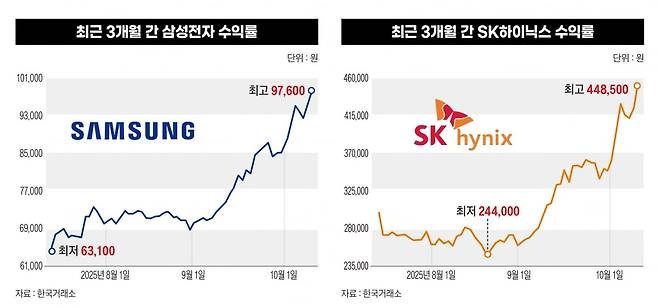삼성전자는 올해 3분기 영업이익이 전년 동기 대비 31.81%나 증가한 12조1000억원을 기록했다고 밝혔다. 영업이익은 3년여 만에 최대치를 찍었다. SK하이닉스 역시도 올해 3분기 12조원대 영업이익을 기록하면서 시장의 기대치를 웃돌 것이란 전망에 힘이 실린다.