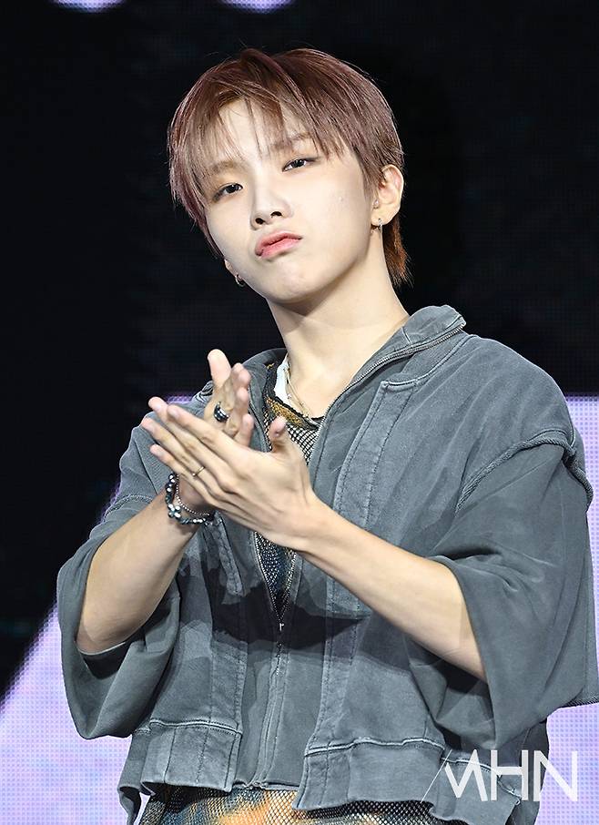 (MHN 이현지 기자) 그룹 보이넥스트도어(BOYNEXTDOOR) 운학이 20일 오후 서울 강서구 KBS아레나에서 진행된 새 앨범 '디 액션'(The Action) 발매 기념 쇼케이스에서 포토타임을 갖고 있다.
