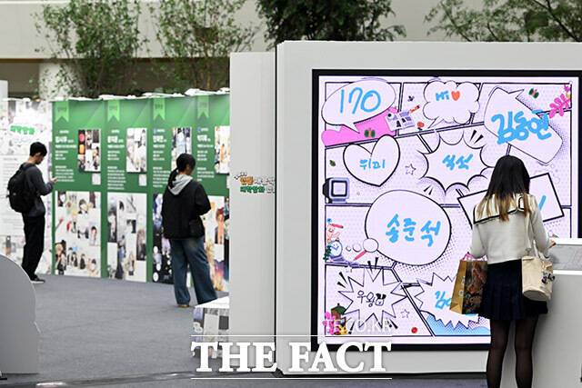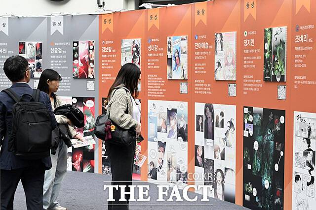 [더팩트ㅣ남용희 기자] '2025 월드 웹툰 페스티벌'이 20일 오후 서울 송파구 롯데월드 아이스링크에서 열린 가운데 관람객들이 전시를 살펴보고 있다.