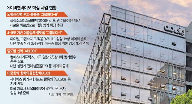 에이비엘바이오(298380)가 연구개발(R&D)에 속도를 내 신약 품목허가를 노린다. 파트너사 컴퍼스테라퓨틱스(컴퍼스)가 개발 중인 이중항체 신약 ‘ABL001’은 내년 상반기 공개되는 미국 임상 결과에 따라 미국 식품의약국(FDA) 조기 승인에 도전할 계획이다. 아울러 자체 개발 이중항체 항체약물접합체(ADC)의 미국 임상 1상도 준비 중이다.