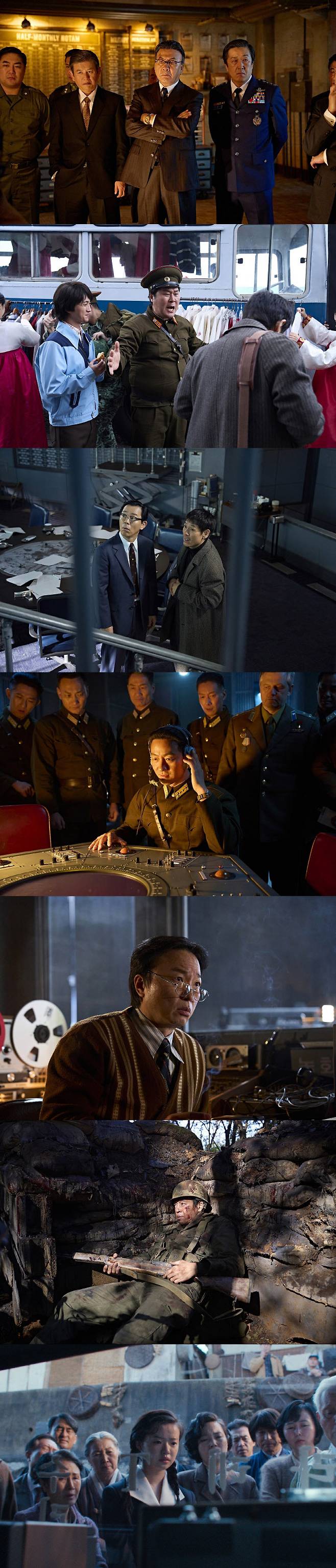 공개된 신스틸러 스틸은 등장만으로도 화면을 장악하며 ‘굿뉴스’를 보는 재미를 더한 다채로운 배우들의 모습으로 눈길을 사로잡는다. 청와대 실장 갑섭 역의 박영규와 김포공항을 평양공항으로 둔갑시키기 위해 현장을 진두지휘하며 큰 웃음을 안겨준 감독 역의 윤경호, 국방부장관 역의 최덕문, 공군참모총장 역의 현봉식의 모습은 무슨 수를 써서라도 비행기를 착륙시키고자 하는 사람들의 긴박감을 생생하게 전한다. 여기에 영부인으로 등장한 전도연은 강렬한 존재감과 더불어 예상치 못한 웃음을 선사하며 시청자들을 놀라게 했다. 모두의 운명이 걸린 절체절명의 순간에도 우아한 손짓과 표정을 유지하며, 캐릭터에 완벽하게 몰입한 전도연은 극에 다채로운 재미를 더했다. 뿐만 아니라, 납치된 비행기 통신을 먼저 하이재킹하기 위해 서고명(홍경 분)과 치열한 대결을 펼친 평양 관제실의 려돌찬 역을 맡은 박해수의 결연한 표정은 긴장감을 자아내며 두 사람 중 과연 누가 승리를 거머쥘 수 있을지 궁금증을 자아낸다. 뿐만 아니라, 아무개(설경구 분)의 작전에 휘말리게 되는 보도국장 역의 전배수, 서고명의 아버지로 등장해 강렬한 인상을 심어준 박지환, 뉴스 인터뷰 속 여고생으로 등장한 김시아 등 다채로운 매력을 가진 배우들이 곳곳에서 활약하며 ‘굿뉴스’를 더욱 풍성하게 만들었다.