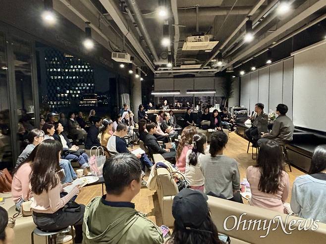 | ▲ 10.29 이태원 참사 희생자 고 신애진씨의 참사 후 세 번째 생일파티 겸 그의 아버지 신정섭씨의 책 출판 기념 북토크 행사가 지난 18일 서울 성동구 헤이그라운드에서 열렸다. |