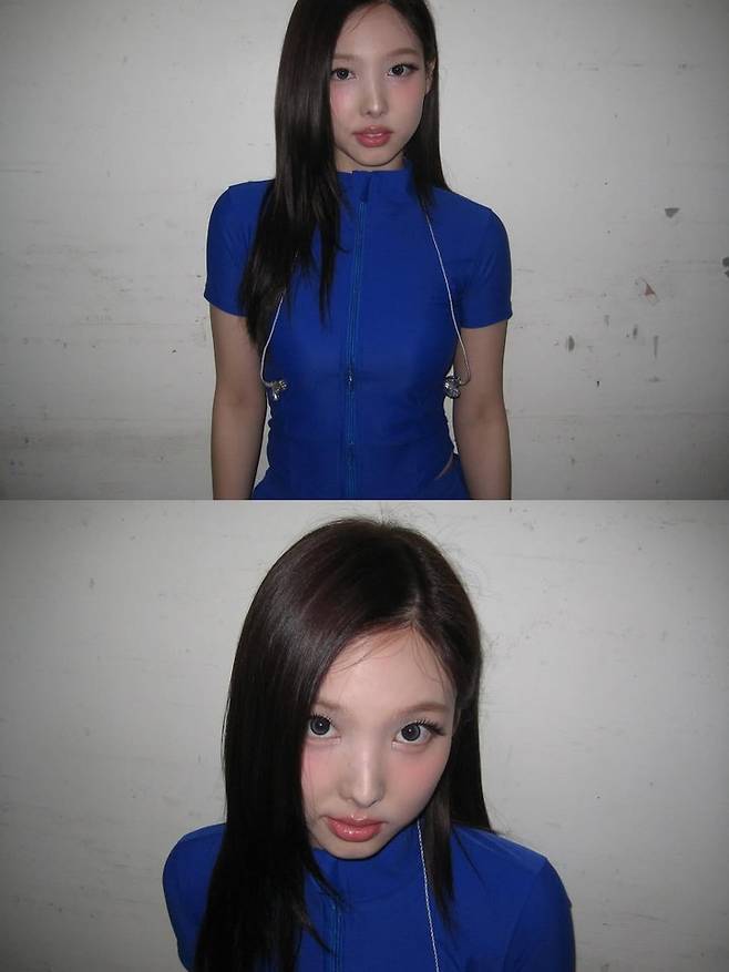 공개된 사진 속 나연은 흰색 오프숄더 톱에 청 핫팬츠, 다른 사진에서는 블루 컬러의 타이트한 무대 의상을 입고 포즈를 취하며 캐주얼한 룩으로 섹시미를 이끌어냈다.