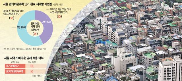정부의 투기과열지구 확대 지정으로 관리처분계획 인가를 받은 재개발 사업장의 조합원 지위 양도가 금지된 가운데 2만 1500가구는 규제 대상에서 벗어난 것으로 확인됐다. 2018년 1월 25일 이전에 사업시행인가를 받은 연립·다세대 주택으로, 도시 및 주거환경정비법 시행 부칙에 따라 조합원 매물 거래가 가능하기 때문이다. 조합원 지위 양도 제한 규제를 피한 주택 재개발 정비사업장은 조합원 내부 갈등 소지가 적은데다 분양가 상한제가 적용되기 전에 서둘러 분양하려는 움직임이 겹치며 사업에 속도가 붙을 것으로 예상된다.