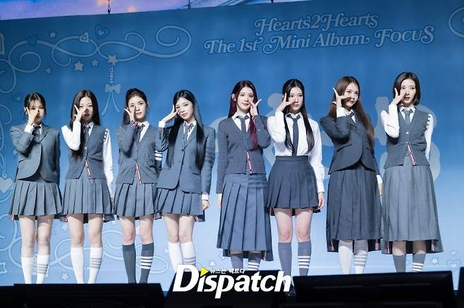 하츠투하츠가 20일 서울 용산구 블루스퀘어 SOL 트래블홀에서 첫 번째 미니 앨범 '포커스'(FOCUS) 발매 기념 쇼케이스를 열었다.
