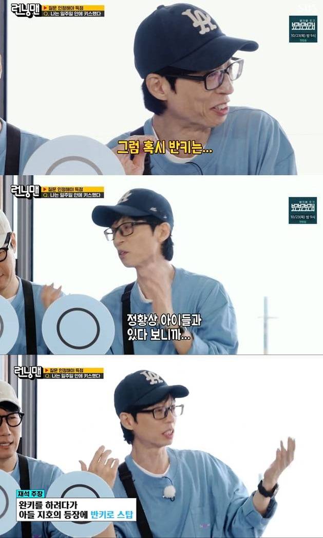 유재석은 여기에서 “최근 일주일 안에 키스한 적 있냐"는 질문을 받았다. 이에 유재석은 “혹시 반키, 하프 키스는 안되냐"고 물었다.
