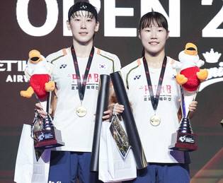 집안 대결이 된 여자복식 결승전에서는 백하나-이소희조(세계 7위·사진)가 김혜정-공희용조(세계 4위)를 2-1(15-21 21-14 21-15)로 꺾고 올해 첫 국제대회 정상을 밟았다. 백하나-이소희조는 올해 김혜정-공희용조와 4차례 맞대결에서 모두 패했지만 ‘4전5기’ 끝에 승리를 따내며 국제대회 우승 감격까지 누렸다.