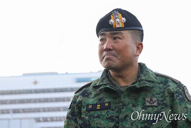 | ▲ 12.3내란 사태 당시 윤석열 대통령의 불법 비상계엄에 동원되어 부대원들과 함께 국회에 투입되었던 김현태 제707특수임무단장(대령·육사57기)이 지난해 12월 9일 오전 서울 용산구 국방부와 대통령실 건너편인 전쟁기념관앞에서 기자회견을 하는 모습이다. |
